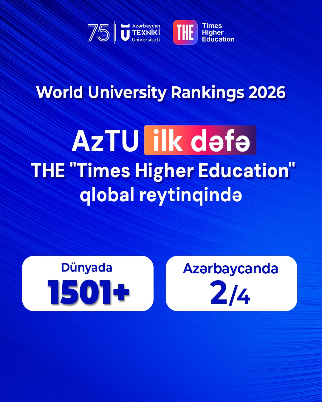 According to the results announced by the international ranking agency Times Higher Education (THE) for 2026, Azerbaijan Technical University (AzTU) has been placed in the 1501+ category among the world’s leading higher education institutions. This ranking further confirms AzTU’s growing scientific research potential, teaching quality, and international reputation. AzTU’s presence in the ranking is of great importance in terms of the university’s recognition in the international academic arena and its adherence to global educational standards. In recent years, the university has strengthened its research infrastructure, actively participated in international projects and programs, and applied innovative methods in the teaching process, thereby enhancing students’ knowledge and skills. This achievement is crucial for disseminating the university’s scientific activities to a wider audience, strengthening international collaborations, and promoting the recognition of Azerbaijani higher education at a global level. AzTU’s position in the global ranking also increases the university’s competitiveness, motivates the academic and…